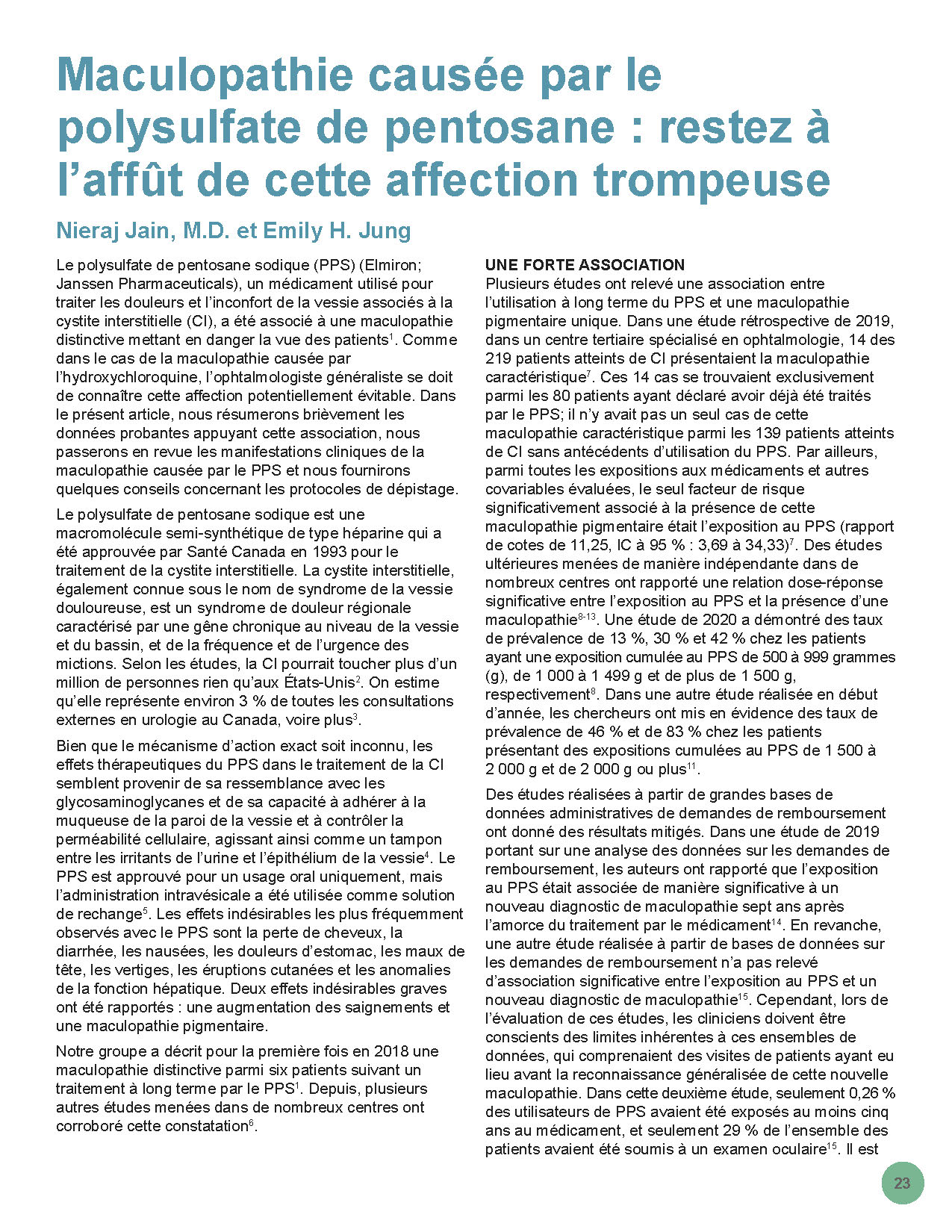 - Maculopathie causée par le polysulfate de pentosane : Restez à l’affût de cette affection trompeuse