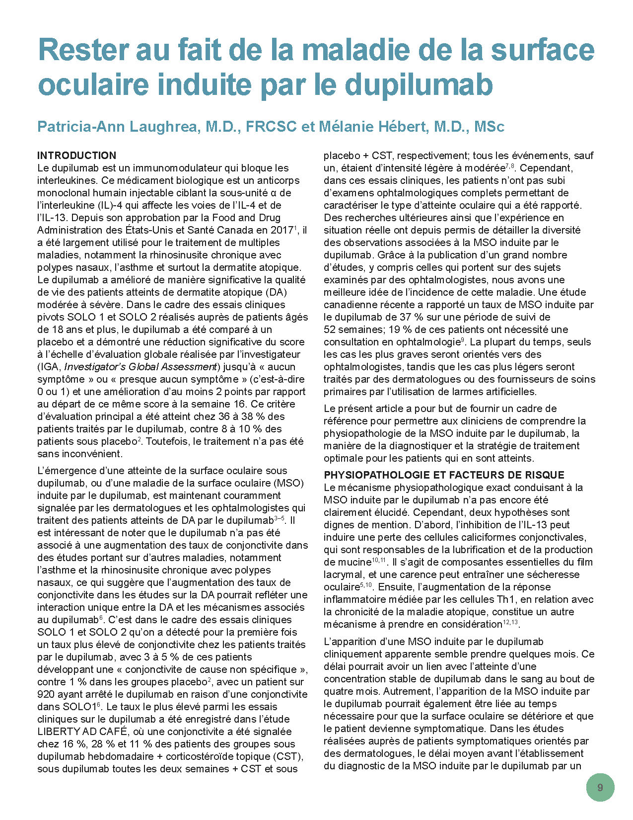 - Rester au fait de la maladie de la surface oculaire induite par le dupilumab