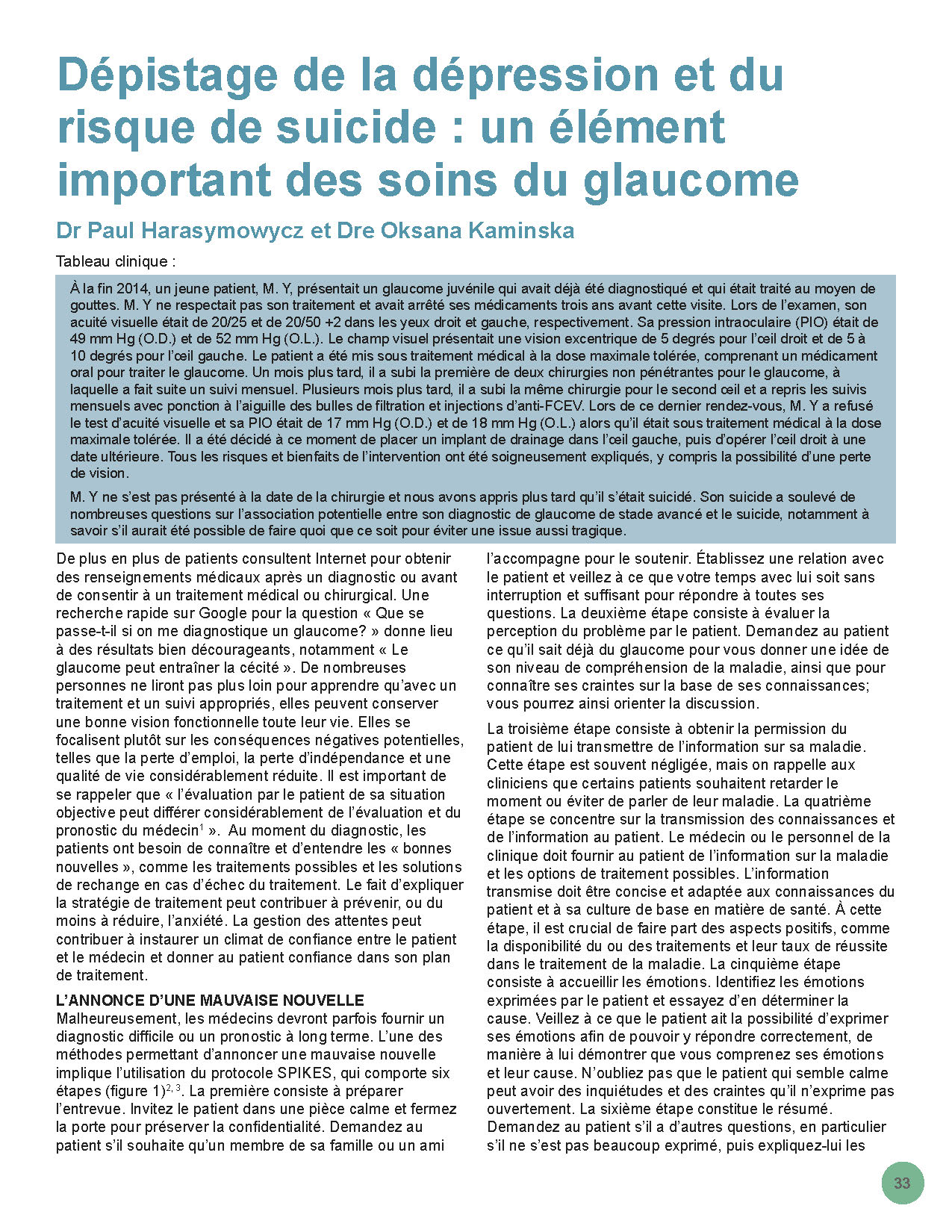 - Dépistage de la dépression et du risque de suicide : Un élément important des soins du glaucome